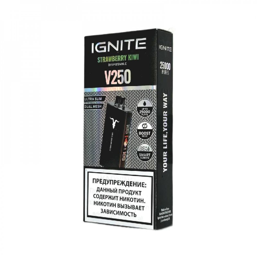 Электронная сигарета Ignite V250 Black 25000 - Strawberry Kiwi (Клубника киви) - купить в Солнечногорске