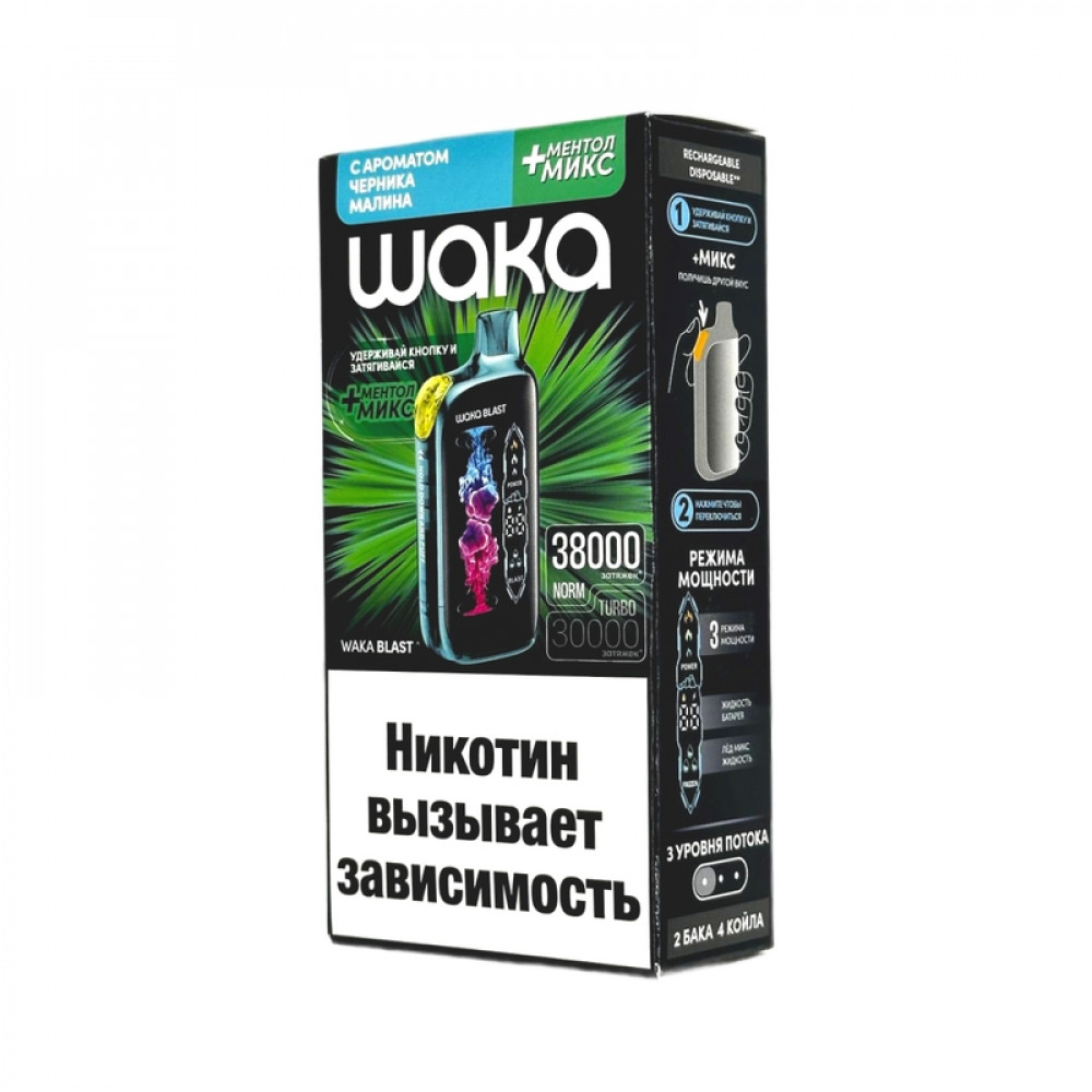 WAKA BLAST 38000 Hard - Черника малина + ментол микс - купить в Солнечногорске